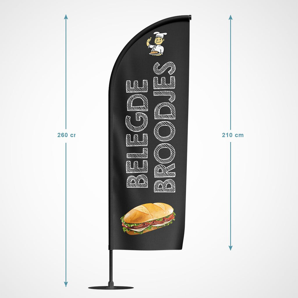 Je kunt de Beachvlag Belegde Broodjes ook met mast bestellen.