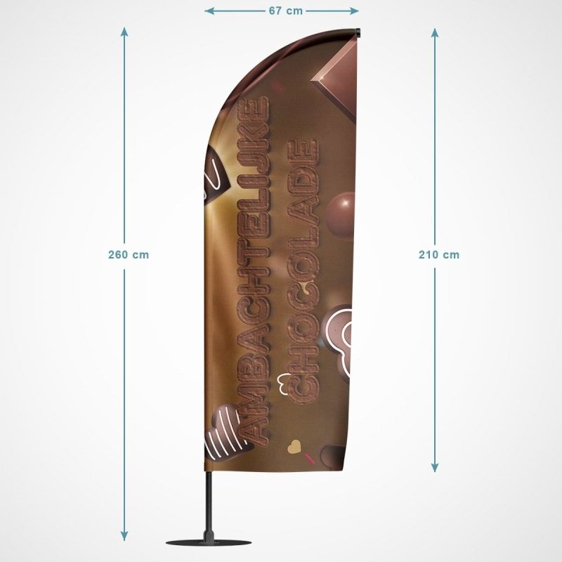 Je kunt de Beachvlag Chocolade ook met mast bestellen.