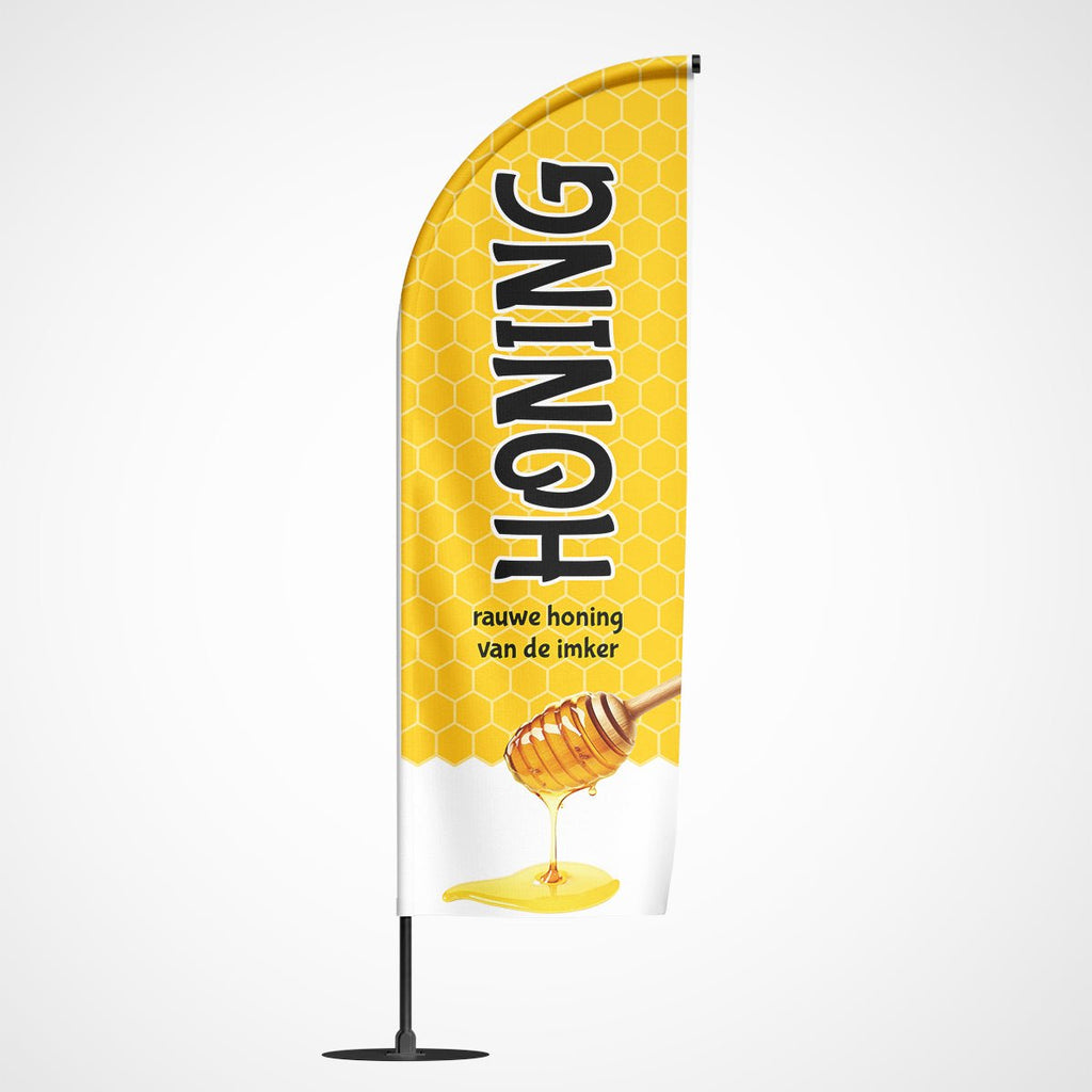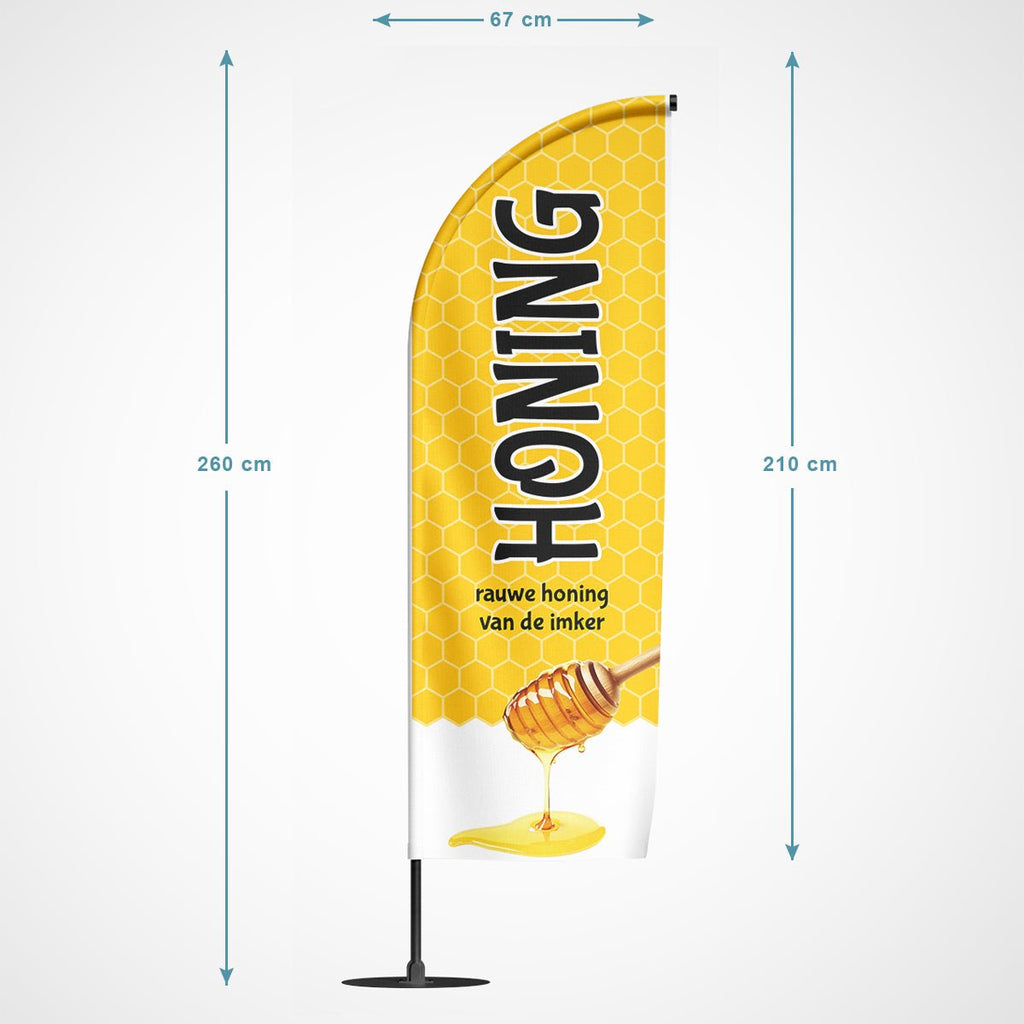 Je kunt de Beachvlag Honing ook met mast bestellen.