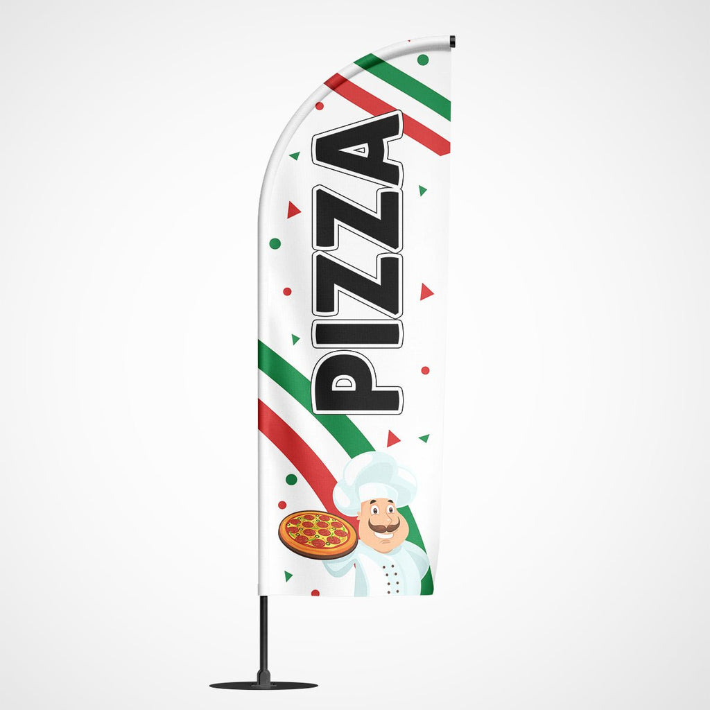Je kunt de Beachvlag pizza wit ook met mast bestellen.
