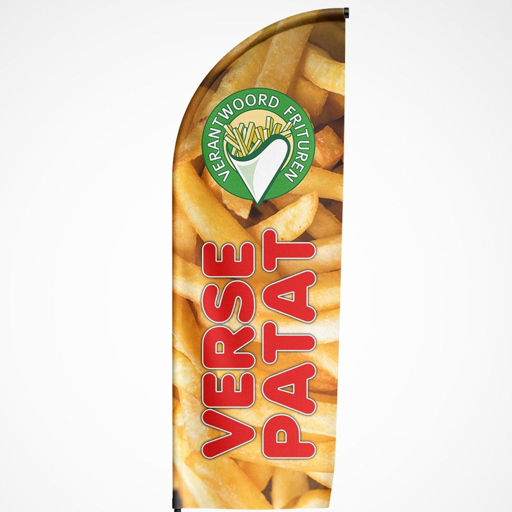 Je kunt de Beachvlag Verse Patat ook met mast bestellen.