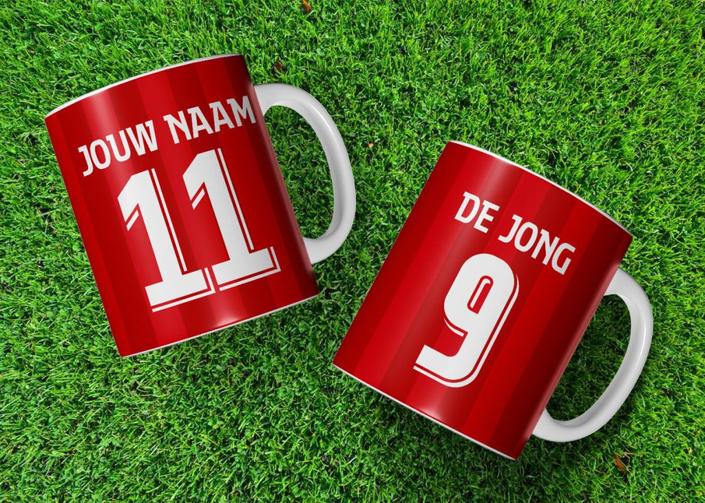 De personalisatieoptie stelt je in staat om de mok te voorzien van de naam en het rugnummer van jouw keuze, waardoor het een ideaal item is voor elke supporter of een bijzonder cadeau.