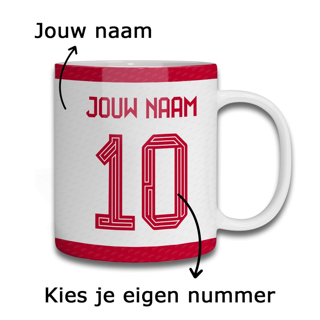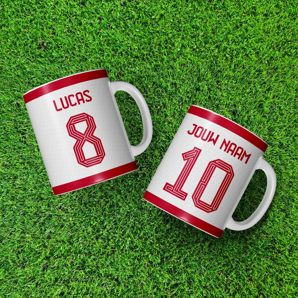 De personalisatieoptie stelt je in staat om de mok te voorzien van de naam en het rugnummer van jouw keuze, waardoor het een ideaal item is voor elke supporter of een bijzonder cadeau.