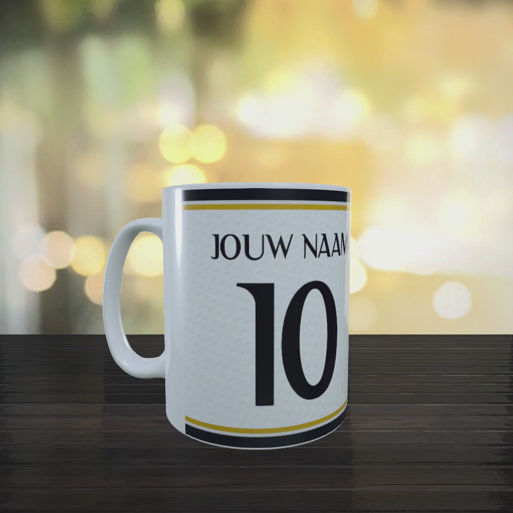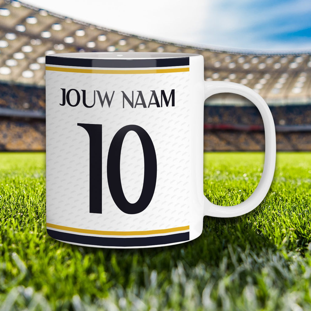 Mbappé Voetbal Mok - Special Edition 2024 - Real Madrid Voetbal Mok - Gepersonaliseerd met naam en nummer + silhouette van Mbappé - 325ml - Voetbal cadeau Mokken