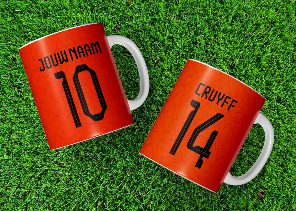 De personalisatieoptie stelt je in staat om de mok te voorzien van de naam en het rugnummer van jouw keuze, waardoor het een ideaal item is voor elke supporter of een bijzonder cadeau.