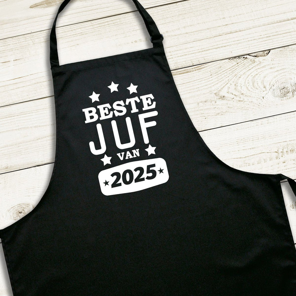 Maak haar dag extra speciaal met dit keukenschort "Beste Juf van 2025" – een cadeau waarmee ze iedere keer weer aan haar geweldige leerlingen wordt herinnerd!