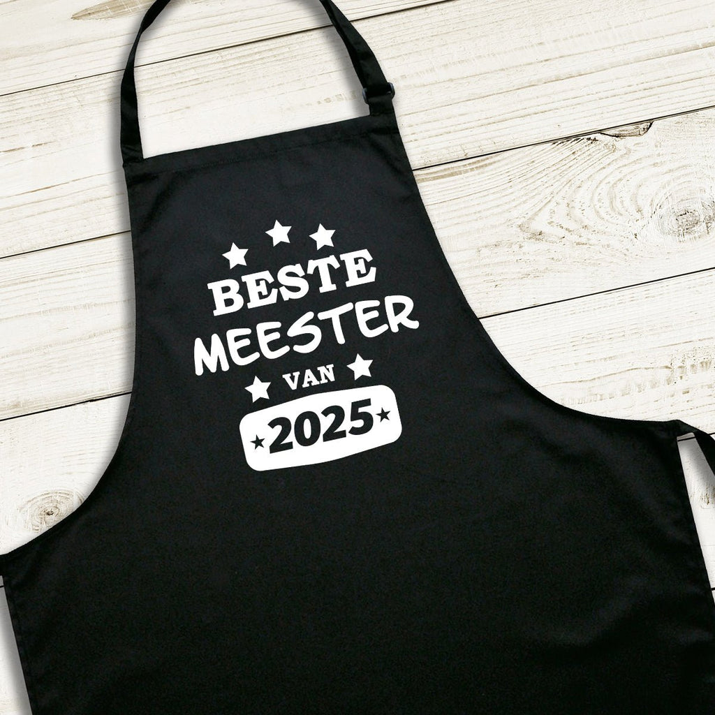 Geef een meester een cadeau waarmee hij iedere keer herinnerd wordt aan zijn geweldige leerlingen. Met dit keukenschort "Beste Meester van 2025" wordt koken nóg leuker!