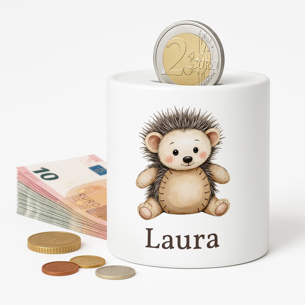 Spaarpot Egel – Gepersonaliseerd met Naam | Lief Babycadeau in Mokvorm
