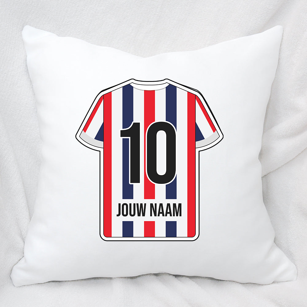 Dankzij de persoonlijke bedrukking met naam maak je van dit voetbal kussen een uniek item. Gebruik het als sierkussen in de woonkamer of als hoofdkussen voor op de kinderkamer – de zachte vulling maakt het kussen comfortabel voor dagelijks gebruik. De kussenhoes is geschikt voor sublimatie en sluit mooi om het kussen heen, zodat jouw ontwerp volledig tot zijn recht komt.